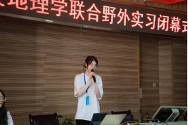 教育部高等学校地理科学类专业教学指导委员会副主任、全国高校地理学联合野外实习联盟理事长、华东师范大学郑祥民教授做实习总结点评。他代表教育部高等学校地理科学类专业教学指导委员会、全国高校地理学联合野外实习联盟对承办本次联合野外实习的组织单位表示衷心的感谢!郑祥民教授指出,地理学联合野外实习的目的是为国家培养基础知识扎实、业务能力精湛、具有家国情怀和奉献精神的地理人才。他鼓励同学们要围绕国家重大战略问题,用地理学专业知识服务于国家建设,为祖国的明天添砖加瓦。