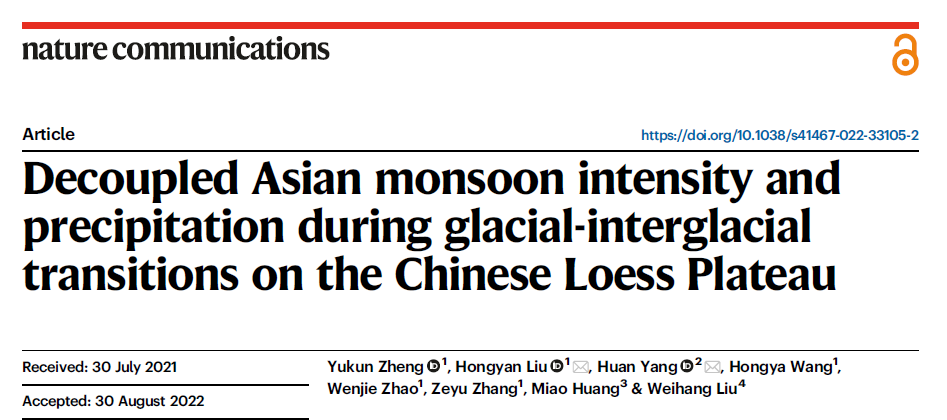 杨欢副教授、北京大学刘鸿雁教授等共同在国际著名期刊《Nature Communications》上发表题为《黄土高原冰期-间冰期东亚夏季风强度和降雨解耦》的论文,郑宇坤为第一作者,刘鸿雁教授和杨欢副教授为通讯作者。论文通过一种细菌细胞膜脂-branched glycerol dialkyl glycerol tetraethers(brGDGTs,支链甘油二烷基甘油四醚),首次使用深度学习技术建立了以brGDGTs为代用指标的全球降水最优预测新模型(brGDGT-DLNN),并通过该模型重建了黄土高原渭南剖面43万年以来季风降雨的变化过程。该模型量化了brGDGTs对年降水量的指示能力,阐明了温度和降水共同影响下土壤微生物指示气候变化的复杂性。这一模型也是继Johan W.H. Weijers在2007年首次提出brGDGTs应用于环境古温度和土壤pH重建后又一重要进展,可以加深学术界对东亚夏季风降雨变化规律的认识。