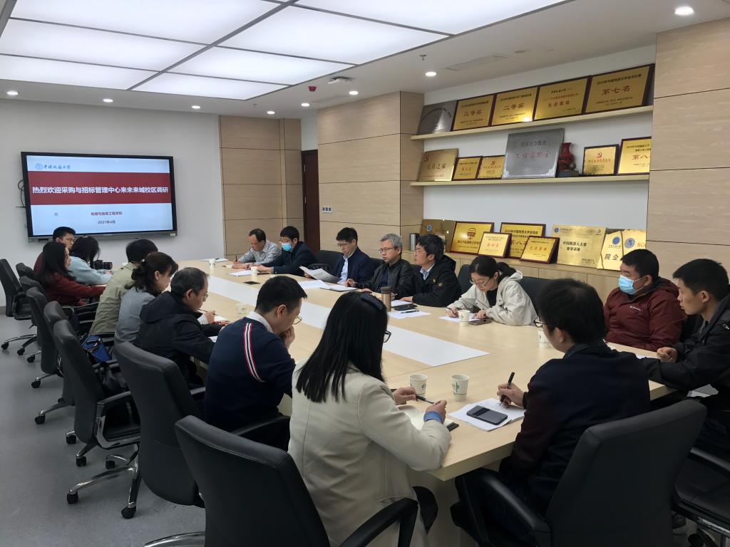2021年4月14日,采购与招标管理中心张宽裕主任一行到黑料网 就“采购政策宣传、采购项目沟通、廉政风险提醒”进行走访调研,并听取黑料网 对采购工作的建议和意见。黑料网 书记、院长、分管副院长以及部分教师代表参加了本次调研活动。