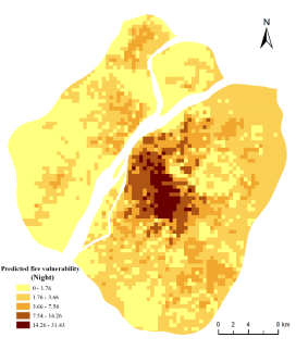 图4 预测的白天(a)和夜间(b)时间段火灾风险对比。