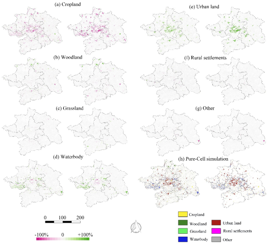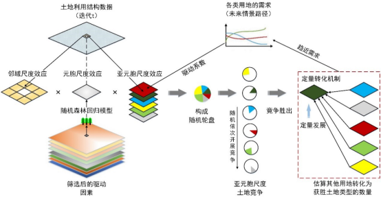 (2) 耦合亚元胞尺度土地竞争与定量转化机制的CA模型