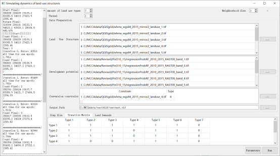 混合元胞CA模型的软件现已发布,包括完整用户手册和测试数据,供全球研究者免费下载。支持算法并行和模拟过程可视化(图8)。下载链接为://github.com/HPSCIL/Mixed_Cell_Cellullar_Automata 或 //www.urbancomp.net/2020/07/25/mixed-cell-cellular-automata-mcca/