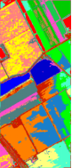 图 3. Salinas实验:(a) 假彩色图像,(b) ground truth, (c) 16类地物平均光谱。 |