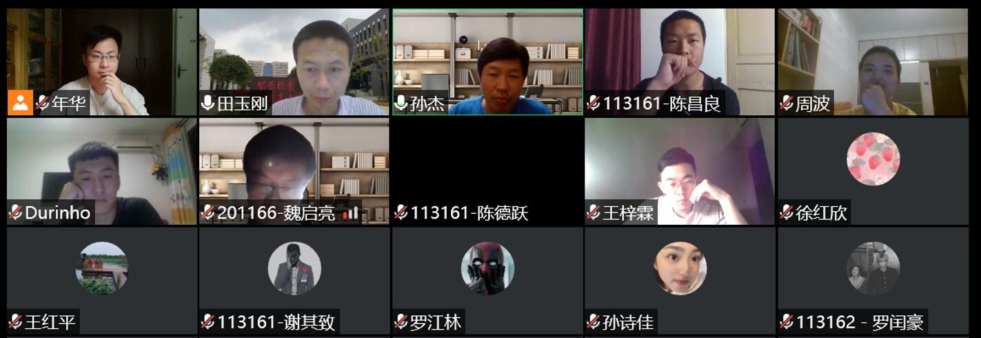 随后,老师们相继发言,向同学们赠送了毕业寄语,表达了对同学们的期望和祝福。肖启芝老师首先说到,希望大家可以继续努力,有空常回母校看看。孙杰老师说到,团队合作精神非常重要,希望大家在毕业后也不要忘记团结同学,继续为祖国发光发热。田玉刚老师说到,大家在奋斗之余,千万不要忘记锻炼身体,任何的成功或享乐必须建立在健康的躯体上。刘修国老师也在百忙之中进入会议,与同学们进行了交流。