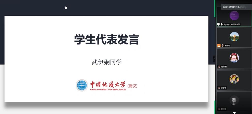 在会议中,首先由116162班的武伊娴和鲍嘉豪同学进行发言,武伊娴同学对自己四年的大学生活进行了一个总结,表达了对于专业任课老师的感激和感恩之情。鲍嘉豪同学讲述了自己大学生活中的一些经历,给大家分享了自己在大学生活中的一些所得所想。
