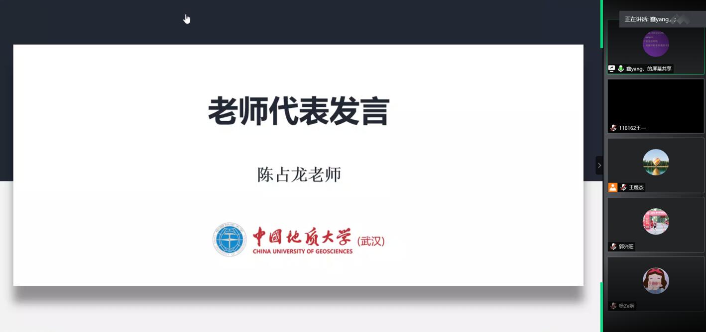 接着,黄鹰老师首先发言,黄鹰老师指出疫情给我们的大学生活带来的许多新的挑战,但有失必有得,我们在面临困难的同时也磨砺了自己的意志,为将来的生活打下了坚实的基础。黄鹰老师告诉我们在求职时要有多元化的思维,不能不撞南墙不回头,一定要学会发掘自己的长处,找出适合自己的工作。而后万林老师表达了对我们这一届毕业生的祝福,希望我们能够不忘母校,常回来看看。陈占龙老师作为最后一名老师发言,陈老师给我们提了三点期望,一是做好人生规划,提前想好下一阶段的发展方向;二是不忘艰苦朴素,求真务实的校训,以积极热情的心态投入到未来的工作学习中;三是珍惜大学期间的友情,师生情,常回校看看。